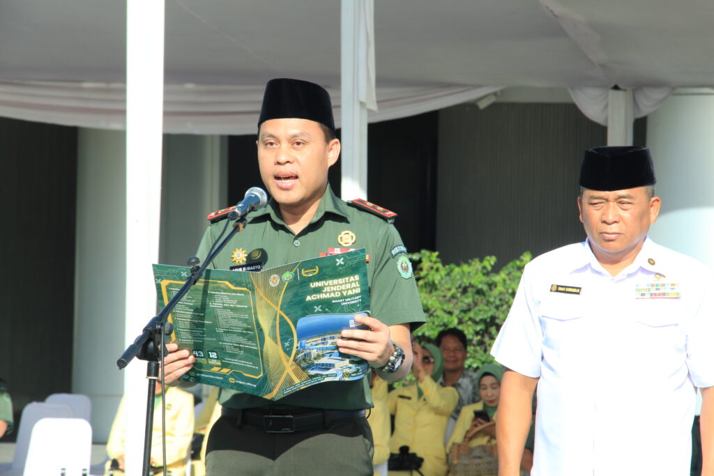 Humas - Universitas Jenderal Achmad Yani (UNJANI) memperingati Hari Pahlawan Nasional melalui upacara bendera yang khidmat di Plaza Achmad Yani, Gedung Rektorat. Kegiatan ini bertujuan untuk mengenang jasa para pahlawan kusuma bangsa sekaligus menanamkan nilai-nilai kepahlawanan kepada seluruh civitas akademika. Rektor Unjani, Prof. Dr. Agus Subagyo, S.IP., M.Si., pada kesempatan ini bertindak sebagai Inspektur Upacara.